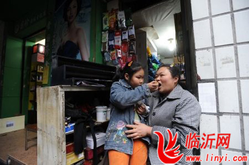 刘敏一家生活节俭,只有逢年过节,才会买鸡和鱼改善生活。“每次改善生活,我们都会把好吃的给父母留一些,再走两条街给他们端过去。”刘敏说,可能从小受此影响,两个孩子都特别懂事,每次学校发东西肖淑丹都会带回家。她忙着补鞋时,女儿会朝她嘴里塞颗糖或其他从学校带回来的东西。