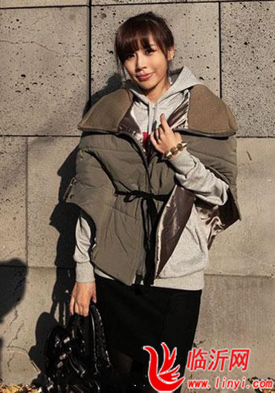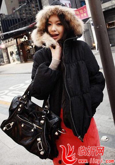 这款大衣乍一看没什么样不同之处,毛毛的帽子加上黑色的棉衣。大块的缝线,让衣服看起来很有节奏感。其实最让你与众不同的地方,就是下面红色的中裙搭配。看起来非常的显眼,引人注目哦。