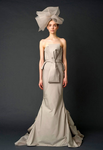 灰色婚纱,不是常规选择,对于皮肤白皙的新娘,可以尝试,但是对于普遍皮肤较为暗沉和偏黄的国内MM们,建议绕道吧。