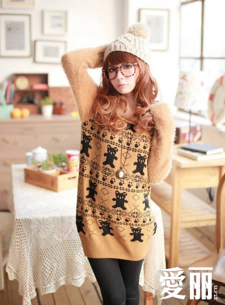 长款的针织衫,淡淡的卡其色彩,温馨浪漫,衣身上采用了精致而立体的小熊图案进行装饰,充满了可爱的俏皮味道,宽大的松紧衣摆,具有非常完美的塑形效果。