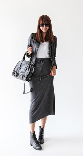 沒有哪一件长裙会像这款皮裙复古得如此高調。开叉的设计,中性中透露了隐隐约约的女人性感味儿,诱惑不已。单边开叉也很有旗袍优雅的韵味,皮革的质感品质感十足,让你个性又有气场。