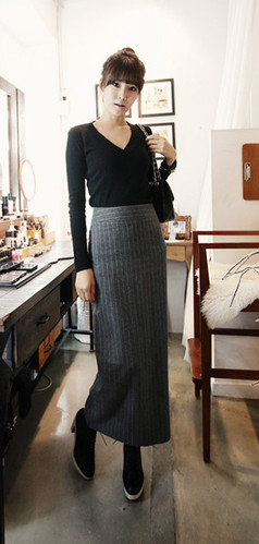 高腰的包身长裙,完美的呈现出你的玲珑曲线,条纹图案的毛呢质地,更具温暖感。T恤与及踝长裙的搭配,有着浓郁的欧美街头风范,优雅而利落,搭出时尚新感觉。