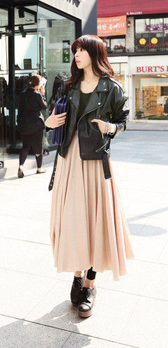 款式多样的优雅长裙,带来今冬最靓丽夺目的风景线,复古长裙最能把女人最美丽的一面表现出来,展现出柔美风韵。看看小编精心挑选的几款时尚长裙吧,总有一款适合美丽的你。贴身的烟灰色棉质长裙对身材格外挑剔,拥有修长美腿的你可以一试。混搭帅气的皮衣和机车包,欧美风十足,让你在人群中脱颖而出。
