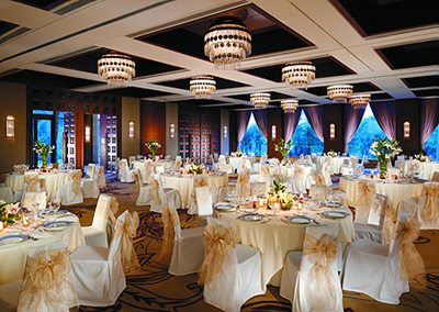 除非您邀请的宾客少或者是婚礼形式特殊,否则形状规则,视野开阔的场地一定是您的首选。考虑到婚礼中新人与宾客的互动,阻碍视线的粗大柱子、屏风、帷幕最好不要有,如果实在无法避免,可以考虑请会场多加一些可以同步播放婚礼进程的影音设备以弥补不足。