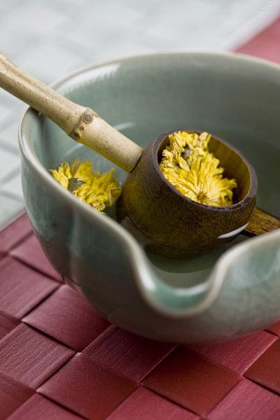 【菊花茶:凝神静气的天然药方】菊花茶之所以成为睡前配制茶饮品的首选,主要是因为其柔和的舒眠作用,是凝神静气的最佳天然药方。