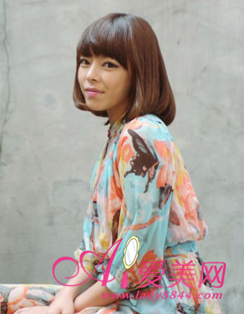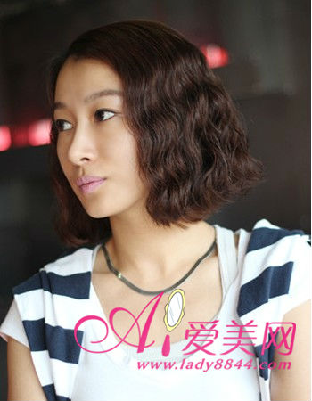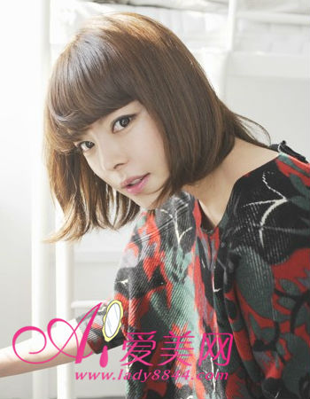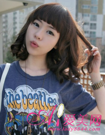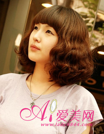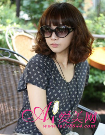 质感丰盈的齐刘海蛋卷头很有摩登女郎的时尚范儿感觉,配搭柔和色调染发,更散发出淡淡的复古情调,魅力无穷。