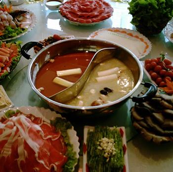 清汤锅底。材料简单、汤口鲜香。锅里加开水,放入葱姜片、两瓣八角、一些花椒、海米和紫菜,加两勺盐和味精就好了。若想吃滋补清汤,就再加些淮山药、枸杞和大枣。