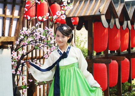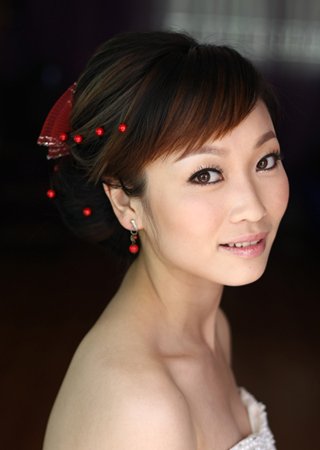 6、时下最受小女生欢迎的韩式盘发。这款典型的韩式盘发造型,因为新娘的五官及气质都非常适合她而显得额外出挑。珍珠婚饰更衬托出新娘的高贵。