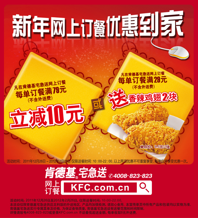 此优惠仅限肯德基宅急送网上订餐。