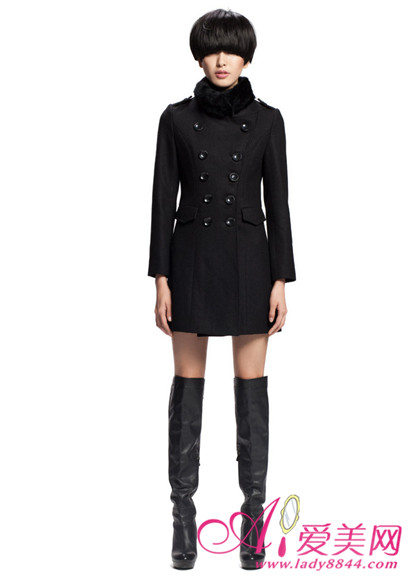 黑色的双排扣毛呢大衣穿起来非常显瘦,加上毛毛领子,寒冷都不怕啦!