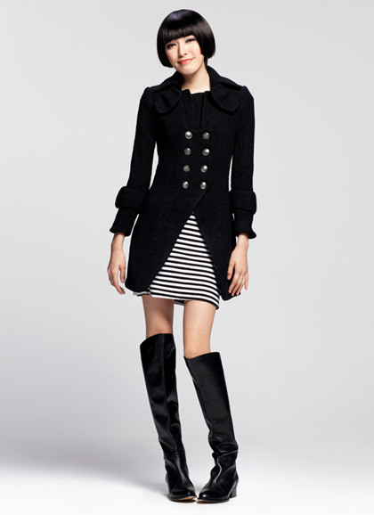 这双双排扣的设计少了一份硬朗,多了一份英伦气息,搭配条纹打底,很有学院气质!