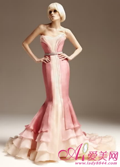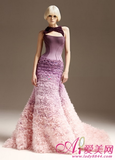 2011各种婚纱尤如绝美绽放,总有一款让你钟情,这件渐变色的鱼尾式婚纱,性感窈窕,优雅极致。