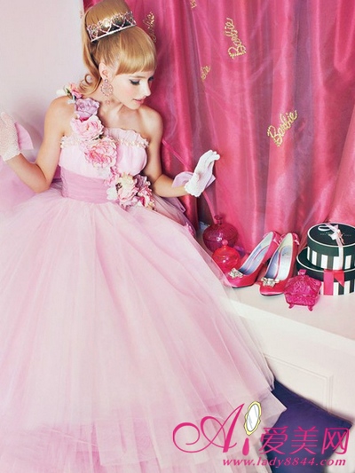 花朵装饰的粉色婚纱,最适合甜美的新娘,也让幸福时刻更有甜蜜感。