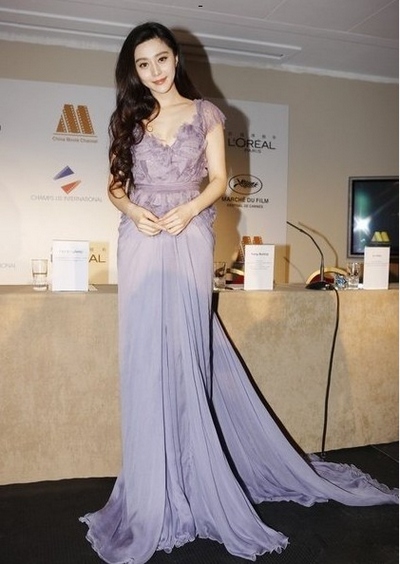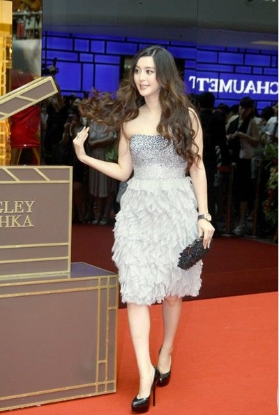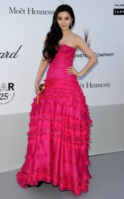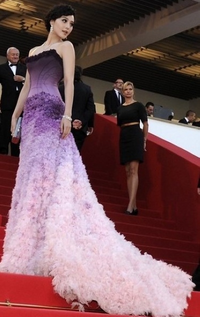 Versace的这件渐变色礼服,造型优雅,立体的材质让范冰冰更显婷婷玉立。