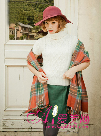 别致的配色方案,绿色A字裙营造复古的气氛,搭配红绿格纹披肩,带有古典协调感给人以细腻的女性风格的印象。