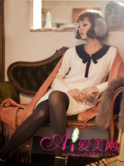 娃娃领白色针织毛衣裙,那简单细腻的钩针图案在阳光沐浴中,勾起你对往事的回忆。