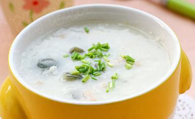 原料:粳米100克、皮蛋2个、瘦肉80克、盐一勺、生粉10克、生抽一勺、鸡精白胡椒粉少许、清水1000克、小葱适量