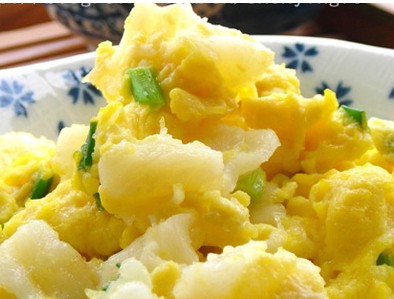 1、 鳕鱼去皮和鱼骨头,取鱼肉,切小块,加少许蛋清生粉拌匀。