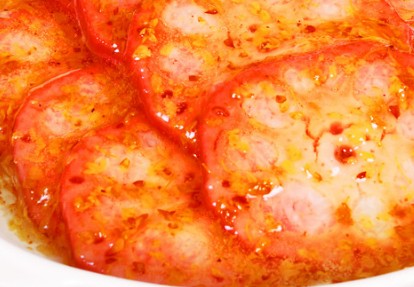 5、放入锅中,加足量清水,适量冰糖、红糖,煮两至三个小时,稍放凉点儿切片,淋上糖桂花即可。(我因为赶时间只煮了一个半小时,虽然已经熟了,但还不够软。)