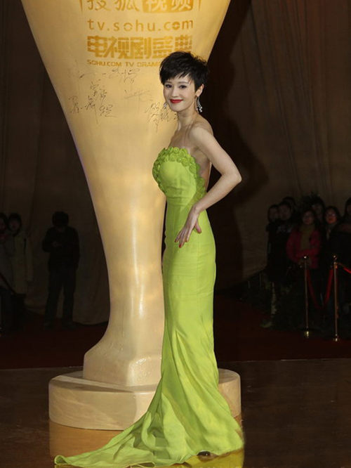 近来频频登上各大颁奖礼的石小群表现出色,绿裙红唇双倍美艳,剪了短发的她五官更显精致。