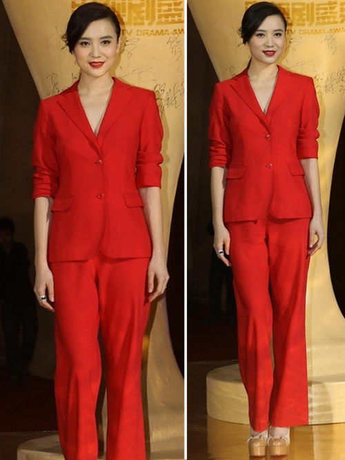 衣架子小宋佳红色西装造型非常抢眼,红衣红唇英气中透着妖艳。