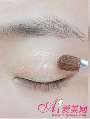 用淡黄色来打底做基色,均匀平涂在眼皮周围。