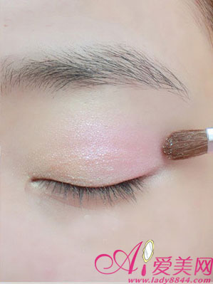 用肉粉色在眼皮中间晕染,一定要均匀。
