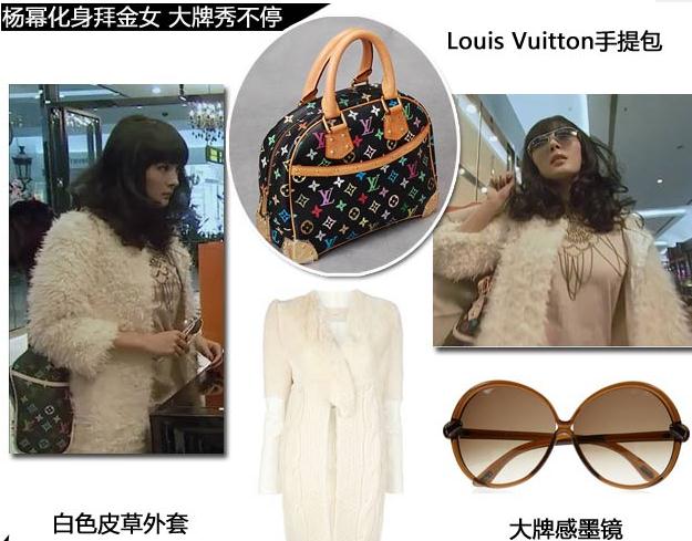 Louis Vuitton的手包、名贵的皮草,杨幂化身成为了一个十足的富家拜金女。除此之外,几乎每集中都是大牌不离身,不过光有名牌没有点缀也是远远不够的,圆形的复古墨镜让剧中的杨幂直接升等,随时秀不停。