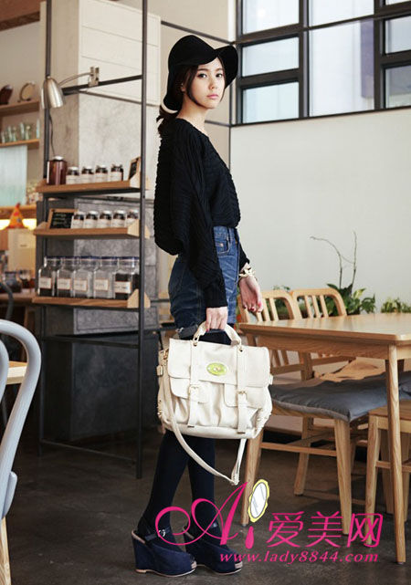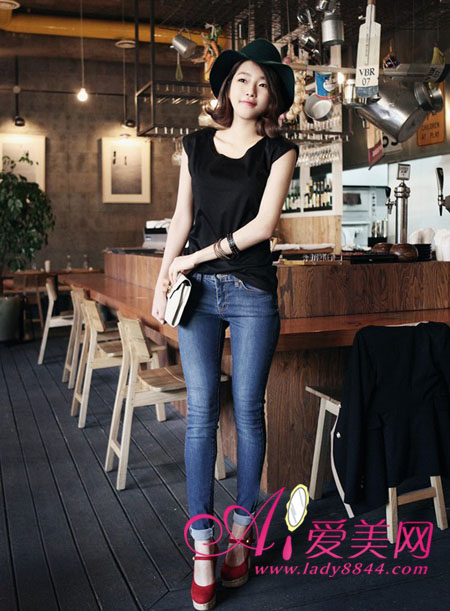 很显瘦的提条黑色紧身裤,牛仔的面料,修长的裤型,简单的设计,却轻易穿出完美身形。