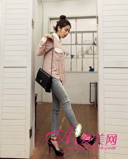 好喜欢这条牛仔裤的颜色哦,有点湖蓝色的感觉,但显得很有牛仔裤的质感,搭配高跟鞋也不错哦。
