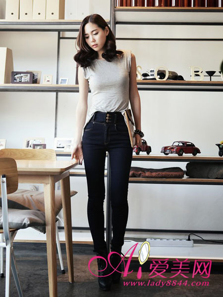 深蓝色的牛仔裤,相对于浅色的来说,会更加显瘦,帮你彻底的解救体型烦恼。
