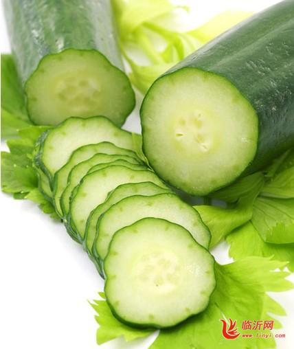味甘,性平,具有明显的清热解毒、生津止渴功效。黄瓜富含蛋白质、糖类、维生素B2、维生素C、维生素E、胡萝卜素、尼克酸、钙、磷、铁等营养成分,同时还含有丙醇、二酸、葫芦素、柔软的细纤维等成分,是难得的排毒食品。黄瓜所含的黄瓜酸,能促进人体新陈代谢,排出毒素;维生素C的含量比西瓜高五倍,能美白肌肤,使其保持弹性,抑制黑色素的形成。而且,黄瓜还能抑制糖类物质转化为脂肪,对肺、胃、心、肝及排泄系统都非常有益。夏日里容易烦躁、口渴,假如喉痛或痰多,吃黄瓜有助于化解炎症。