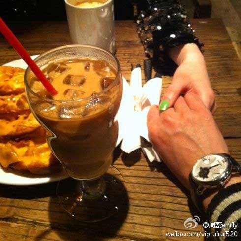 昨日上午9时左右,模特周蕊在其认证微博写道:“谢谢我的生活一直有你陪伴,谢谢干爹在会议期间百忙中抽出时间为我们举办生日宴,谢谢书法家李羊民老师为我们题词:常相爱,贵相知……”照片中,周蕊正与一男子手把手共切生日蛋糕,但是该男子面部被打上了红色心形码,身份不明。微博发出后,网友蜂拥围观跟帖,虽当事人迅速删掉但截图已在微博疯传。