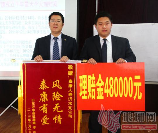 3月14日上午,当沂水县张女士的家人从泰康人寿临沂中支徐经理的手中接过48万元理赔金后,激动地留下了泪水,这样让张女士的家人更加坚信了买保险就是尊重生命的生活理念。这起案例也是泰康人寿临沂中支成立十年来赔款金额最大的一起案例。
