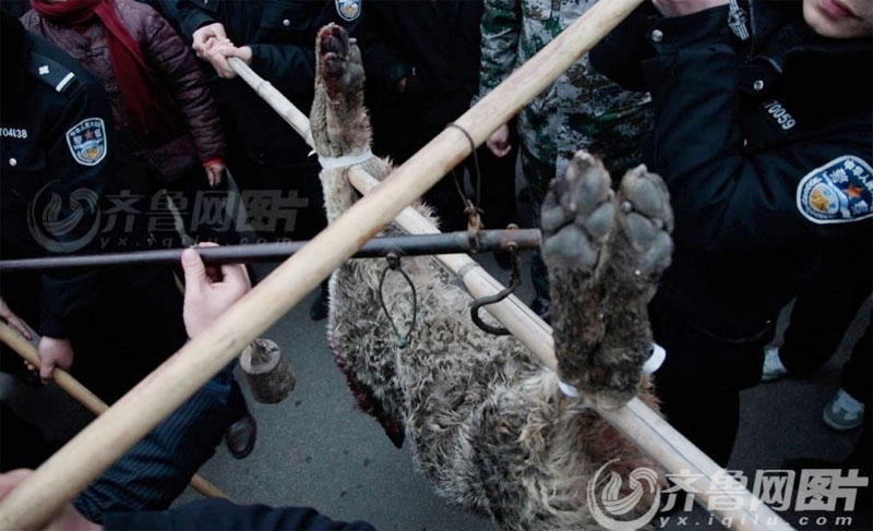民警抬着被打死的大灰狼