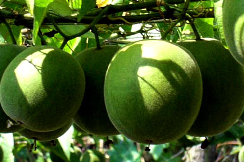 罗汉果性凉味甘,有清热凉血、生津止咳、滑肠通便兼润肺化痰、美容抗朽迈的多重功效,能治疗急慢性气管炎、咽喉炎、急性扁桃体炎、支气管哮喘、失音和便秘等病症,并有助降血压。罗汉果中的糖甙甜度高得惊人,无论是鲜果还是干果,吃起来都非常甜。