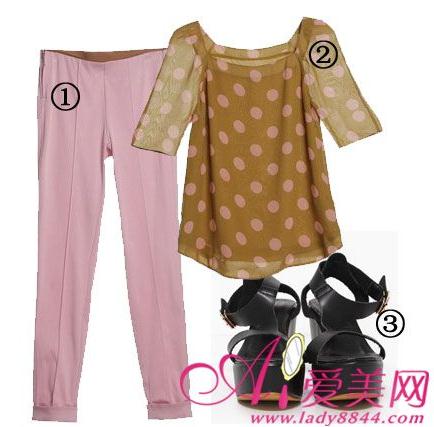 搭配Tips:腿较粗的矮个子MM不妨试试修身但不是紧身的7分裤,搭配假两件的上装,选择的上装可以是不规则不对称下摆的T恤或者是雪纺衫,不要忽略了厚底鞋。