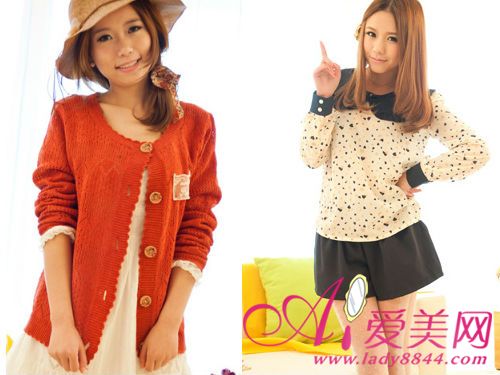 可爱的娃娃领雪纺衬衫搭配蓬蓬短裙,早晚天气冷的时候不妨随身带上一件薄款的针织开衫外套。