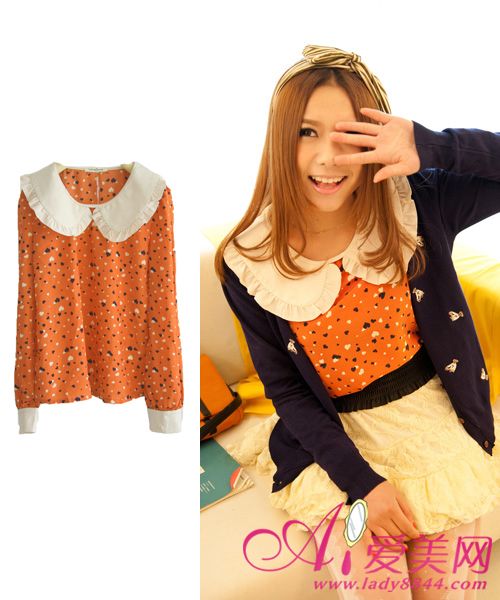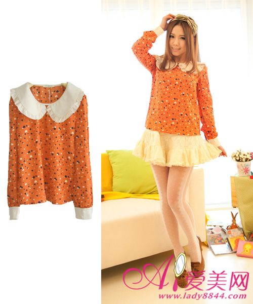 搭配一:娃娃领雪纺上衣 + 蕾丝蓬蓬短裙