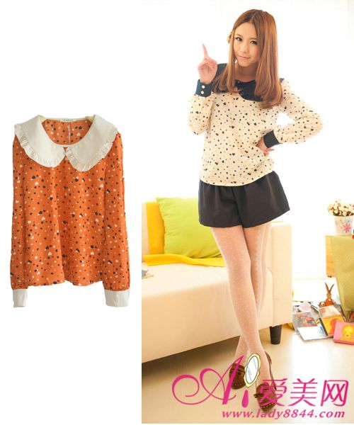 搭配二:娃娃领雪纺上衣 + 甜美休闲短裤