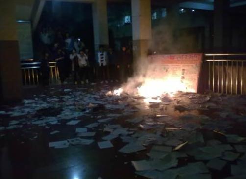 随后,楼下高一、高二年级有学生到草坪上点燃书本和辅导资料,霎时,整栋教学楼都站满了学生,学生们拒绝回到教室。据高三年级理科班的李姓同学说,高一、高二年级这次也需要缴纳400元的资料费。