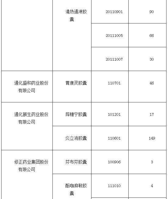 第一批检验主要针对媒体曝光的9家药品生产企业,共抽验33个品种42个批次,其中23个批次不合格。检验结果表明,长春海外制药集团有限公司、青海格拉丹东药业有限公司、丹东市通远药业有限公司、吉林省辉南天宇药业股份有限公司、四川蜀中制药有限公司、修正药业集团股份有限公司、通化金马药业集团股份有限公司、通化盛和药业股份有限公司、通化颐生药业股份有限公司等企业有的批次产品使用的胶囊铬含量超过国家药典限量标准。上述企业未按药品生产质量管理规范组织生产,使用了不符合国家药典标准的胶囊,产品质量不合格。
