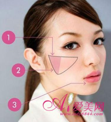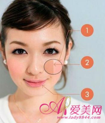 将蘸有粉色腮红的刷子在颧骨苹果肌处上下各扫一次,在眼睛正下方用腮红刷垂直扫上腮红,这样的腮红扫发会让你立刻变得很可爱哦。