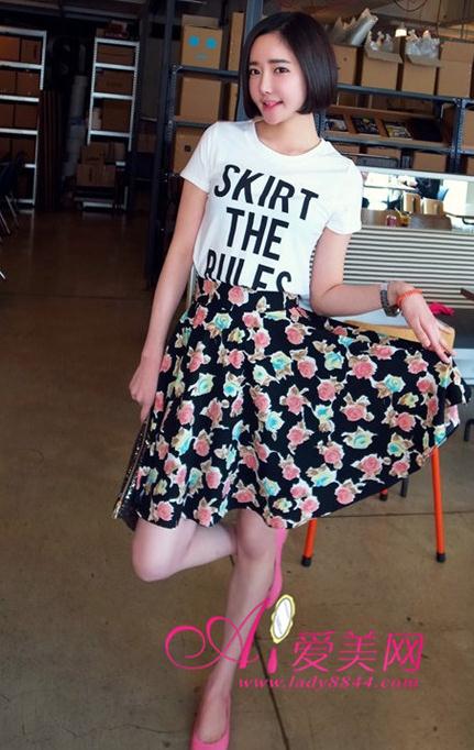 复古派:字母T恤 + 碎花半身裙
