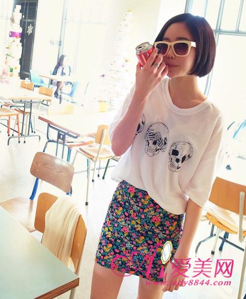 朋克感的不羁骷颅头白T恤,玩味rock的少女叛逆feel,搭配上复古的浓厚色彩碎花裙,包臀的设计和这高调的花色勾勒出美妙臀线,却性感中尽显时尚感。