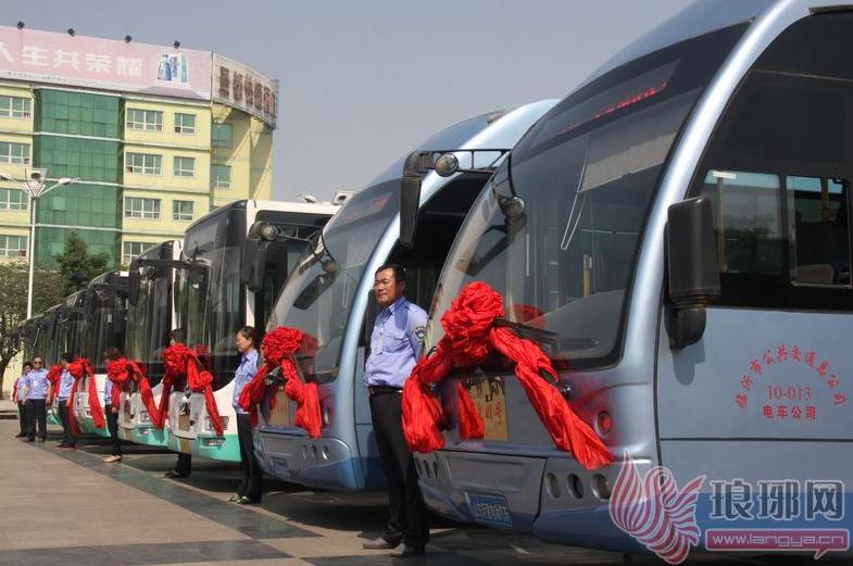 16日上午,临沂火车站内一辆辆公交车排列整齐,披红戴花,光彩照人。临沂市4条公交线路今天正式挂牌“青年文明号”、“工人先锋号”。