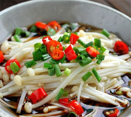 1.烫金针菇的时候一定要熄火,烫过头金针菇就软答答的没精神了。