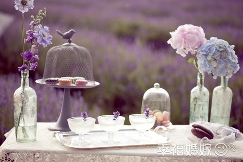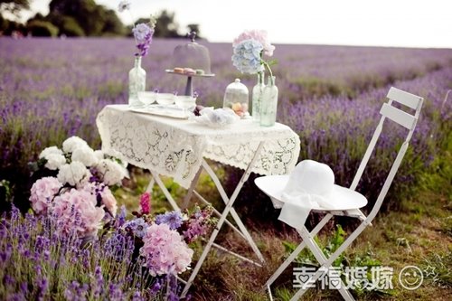 在薰衣草花海中办婚礼,可以完全就地取材,用薰衣草做装饰桌花,在薰衣草的香味中好心情都可以飘很远~