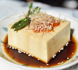 3、蛋豆腐切好,装盘,放上芦笋,淋上酱汁,撒上芝麻,舀上一勺鱼子酱,撒上木鱼花即可。