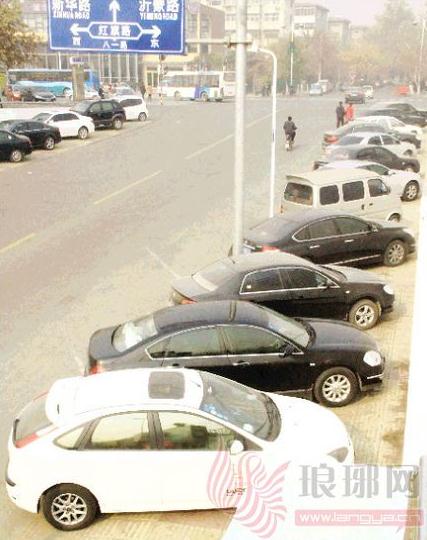 市区八一路上的临时泊位停满了车辆。